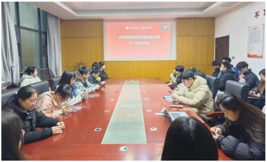 学生第四党支部在信息楼114教室举办主题为 “从‘听故事’到‘创未来’”十二月研讨会。支部全体党员及发展对象参会,围绕新时代青年党员的使命担当展开深入交流。