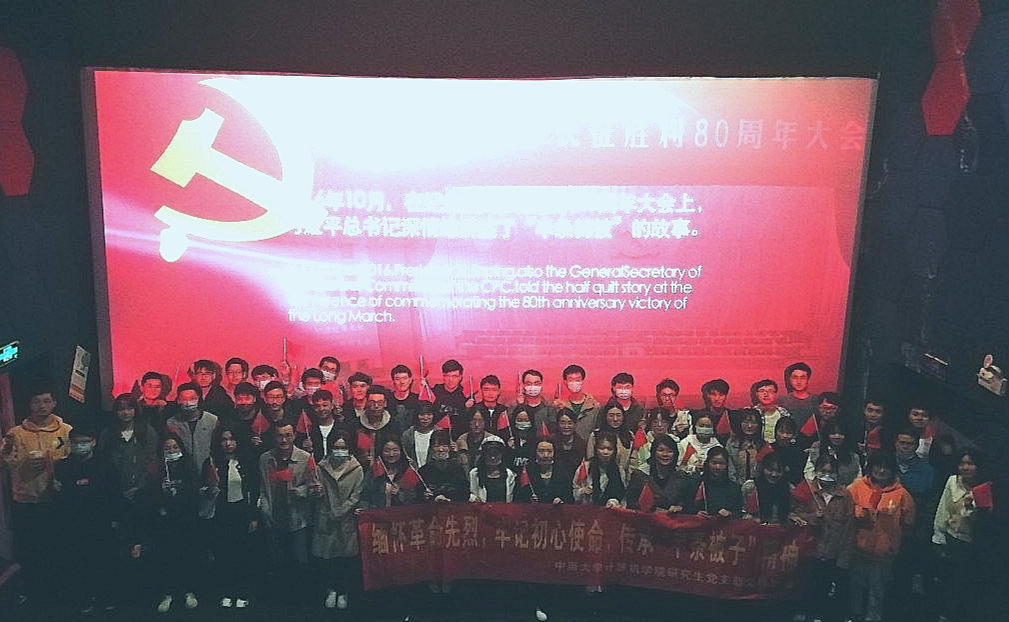 研三、研四、研五党支部联合开展了观看电影《半条棉被》、《夺冠》的“不忘初心、牢记使命”主题党日活动。
