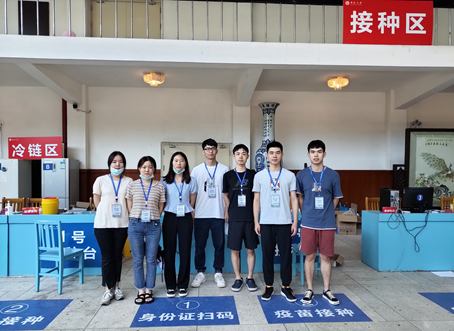 铁道博天堂娱乐城小礼堂进行疫苗接种志愿服务。党员们热情且耐心地向前来接种的学生、老师和居民们讲解注意事项;利用所学的计算机专业知识,为接种人群更准确高效地进行信息登记,引导大家有序进行疫苗接种。