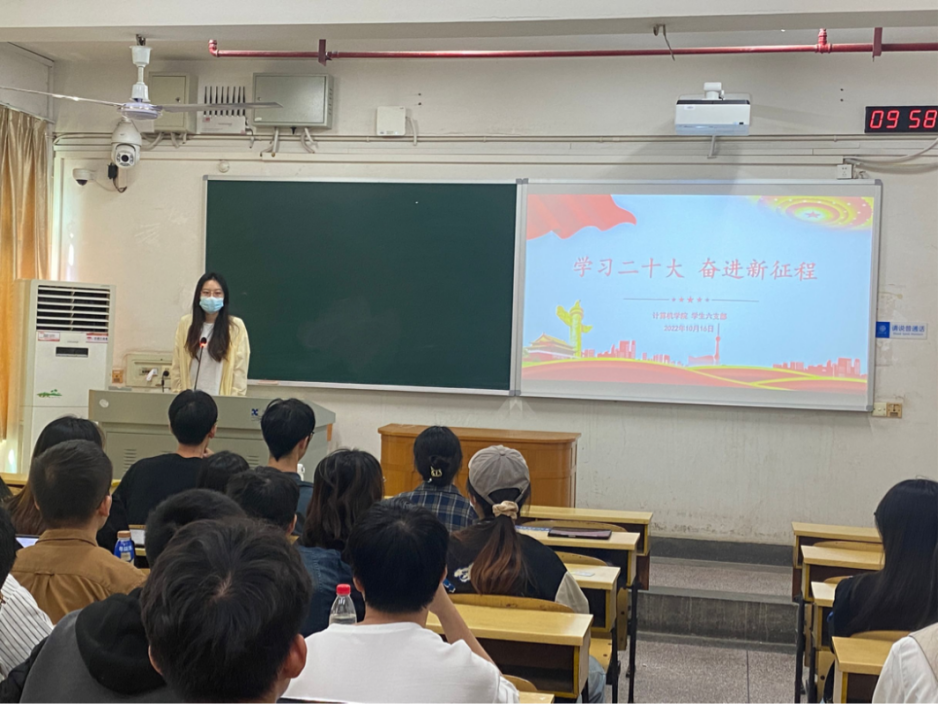 (学生第六党支部书记宋晓萌组织全体党员同志认真观看学习)