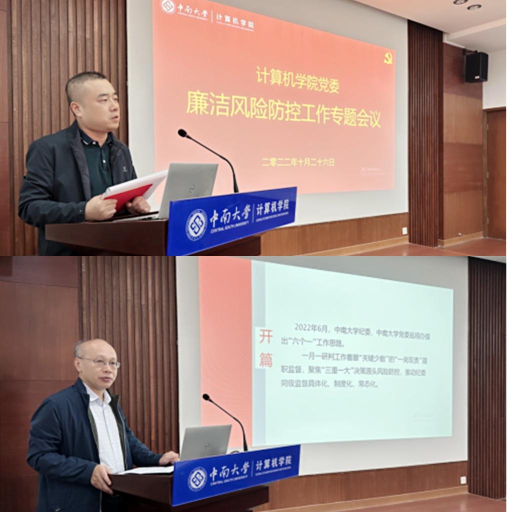 党委的工作,强调“教育在前、预防在前、监督在前”,提出要抓关键、抓源头、抓重点事项,加强落实防控措施,完善规章制度,建立长效机制,进一步规范权力运行,确保廉洁风险防控工作落到实处。随后,唐海仕老师对博天堂娱乐城“一月一研判”工作开展过程中的注意事项进行了详细指导并与参会老师进行了交流。