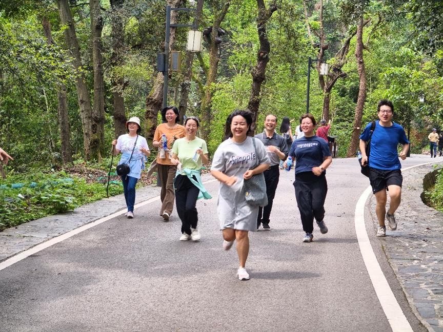 春和景明日,携众登山时。虽是四月末,长沙天气已渐渐变热,然而,这并未阻挡我院师生攀山登顶之热情。比赛开始前,老师与同学们一起进行了热身运动,跃动的身影展现出蓬勃的活力。随着赵晓霞书记宣布比赛正式开始,由师生共同组成的登山小队们纷纷踏入了征途。