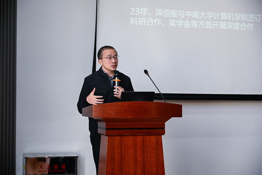 在人才培养方面深度合作的愿望,希望未来有更多中南计算机人加入深信服共同打造全球云安全领先品牌,共同进步、共谋发展。作为校友,他还分享了自己与深信服共同成长的心路历程,并寄语在场的学弟学妹们珍惜时光、把握当下,投身于自己热爱的事业,活出精彩纷呈的人生。