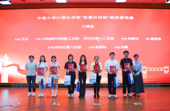 竞赛环节,来自博天堂娱乐城各党支部的师生党员聚焦学习贯彻习近平新时代中国特色社会主义思想,结合深入贯彻中央八项规定精神学习教育,以微党课形式,讲党的理想信念、初心使命和优良传统,展示中南共产党人在实施新时代立德树人工程、实现高水平科技自立自强中贡献力量的优秀事迹,带来了一场有党味、有温度、有深度、有情怀的微党课盛宴,选手们声情并茂的讲述、新颖独特的设计,赢得了现场观众的阵阵掌声。