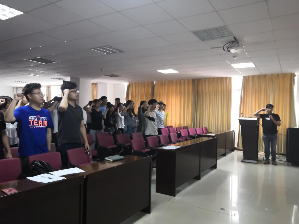 活动由谢老师主持,主要分为预备党员宣誓暨老党员重温入党誓词、毕业生党组织关系转出以及观看《榜样3》三个环节。活动伊始,在谢老师的带领下,全体起立,预备党员宣誓暨老党员重温入党誓词,全场气氛热烈,激动人心。
