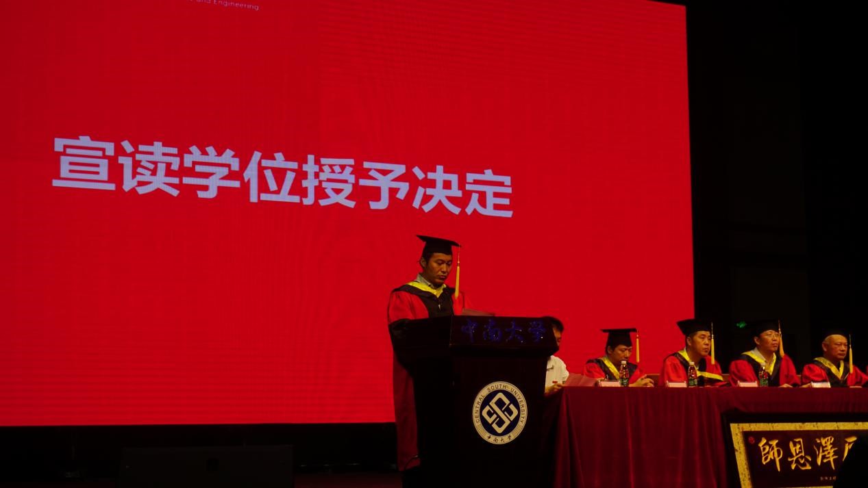 随后,陈书记和王院长接受毕业生的赠礼,邓晓衡副院长宣读学位授予决定。