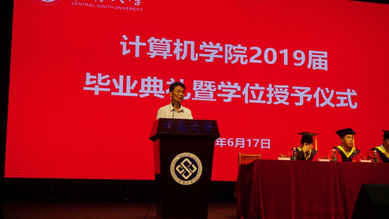 党委书记陈志刚教授,院长王建新教授,副院长胡志刚、曾锋、邓晓衡、赵明、龙军教授,党委史建权副书记,教师代表任胜兵老师和王玮老师。2019届通信工程、软件工程毕业生参加了毕业典礼。毕业典礼由史建权副书记主持。