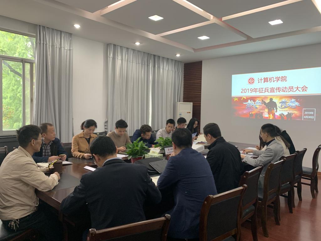 2019年征兵宣传动员大会在计算机楼308会议室召开。学生工作部副部长兼武装部副部长徐旭敏、博天堂娱乐城