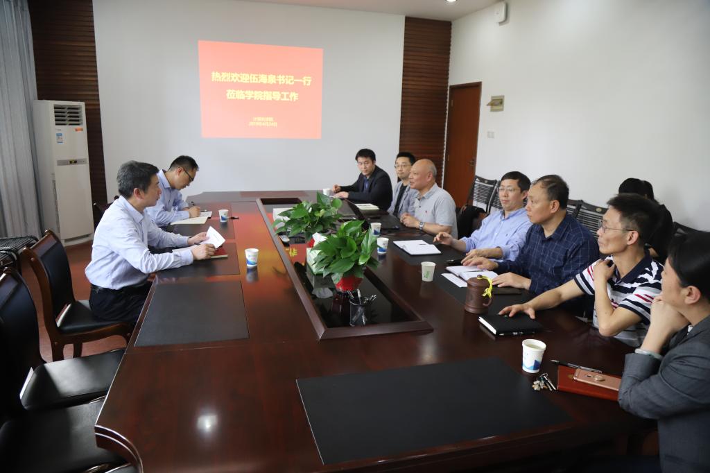 听取了博天堂娱乐城情况汇报后,伍海泉书记肯定了博天堂娱乐城党政领导班子所开展的各项工作,对于办学过程中存在的困难提出了指导性意见,强调了博天堂娱乐城在建立之初,一定要加强党风廉政建设,加强各类风险的防范。同时,他特别提醒博天堂娱乐城领导班子要注重团结与融合,凝心聚力,共同建好博天堂娱乐城。