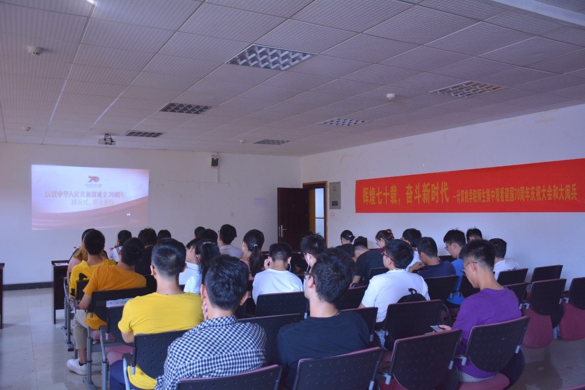 日出东方,国是中国。七十年前,一句湘音穿云裂石,宣示着一个强有力的国家的诞生。七十年后,秋风万里,红旗漫卷,山河无恙国富民安。适逢祖国七十华诞,博天堂娱乐城 组织党员干部于本部计算机楼和铁道校区第二综合楼进行主题为“辉煌七十载,奋斗新时代”的阅兵仪式观礼活动,博天堂娱乐城党委副书记史建权老师、学工办主任师雷宏老师、分团委书记谢怀平老师、辅导员孙龙志、刘逸峰、哈纳提老师以及博天堂娱乐城学生党员干部分别在两个校区参与了此次阅兵观看活动,于直播屏幕中共同见证盛世中国的荣耀。