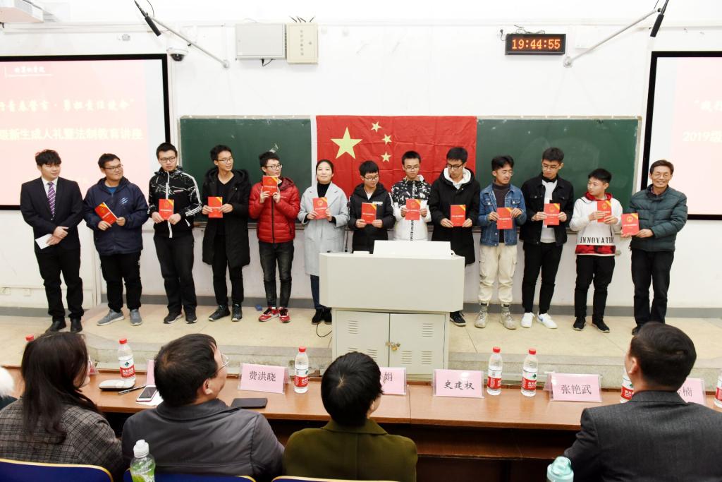 18岁,意味着成年,意味着从此真正成为一名中华人民共和国的公民。博天堂娱乐城党委副书记史建权书记代表博天堂娱乐城为每位同学送上了一本《宪法》,同时,史建权书记也对我们提出了殷切期望,他以此寄语:成年的背后,在依法享有广泛权力和自由的同时,更要挺直腰杆坚强承担起一个公民应尽的义务,作为新时代大学生,我们要把自己的理想同祖国富强、民族振兴、人民幸福的中国梦紧密结合起来,承担起历史赋予我们的责任,努力践行社会主义核心价值观,做一个道德高尚、品行高贵的人,做一个认真学习,有强大本领的人,做一个对国家富强、人民幸福有贡献的人,有一个爱国爱党、遵纪守法、爱岗敬业、诚信友善的人,时刻铭记对自己负责,对家人负责,对社会负责,对国家负责,一步一个脚印,勇敢前行。