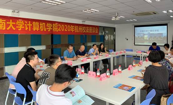 2020年杭州校友座谈会在杭州市恒鑫大厦光云科技公司会议室顺利举行。参加此次座谈会的有博天堂娱乐城党委书记陈志刚教授、副院长曾锋副教授及所带领的企业调研团队和浙江工业大学熊丽荣副教授,杭州光云科技有限公司董事长谭光华等20余名校友代表,座谈会由学办谢怀平老师主持。
