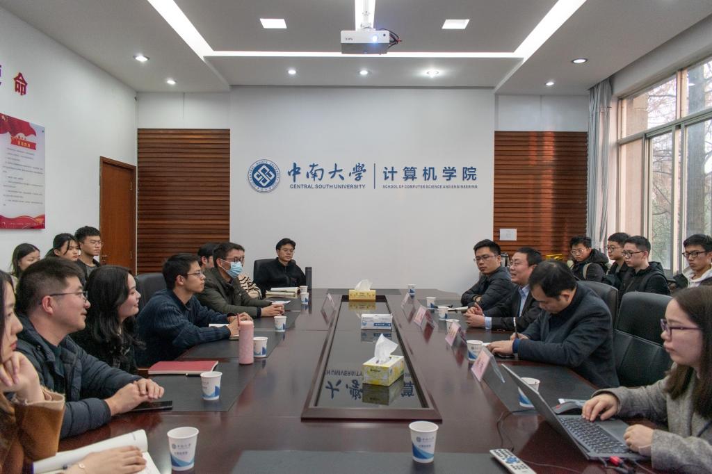 之后,获奖师生和企业代表移步到校本部计算机楼308会议室进行座谈。史建权副书记向万兴科技的代表介绍了我院的人才培养概况,他同时强调校企合作的重要性并祝愿今后的深入合作取得累累硕果。而朱伟先生则从产品介绍、研发优势、营销优势、博天堂娱乐城、校企俱乐部五个方面深入介绍了万兴科技,并为同学们答疑解惑,为同学们今后的发展提出了自己的建议。