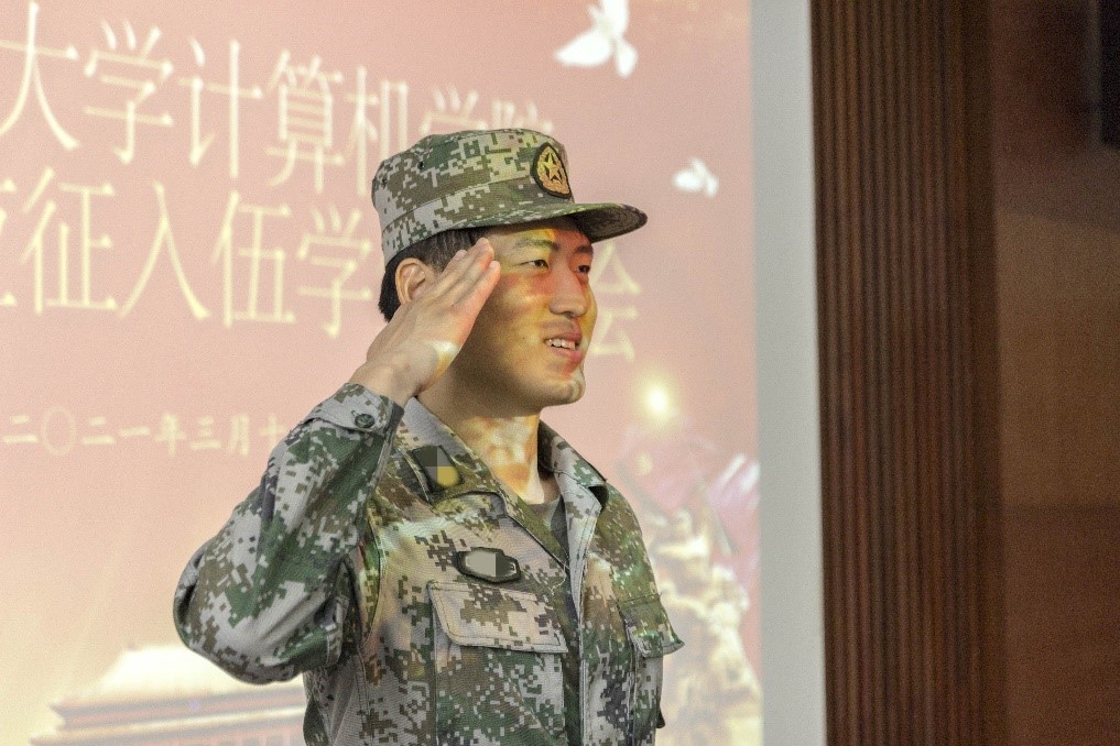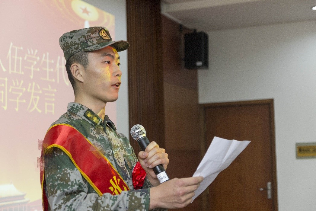 随后由新兵代表李星光上台发言,他表示自己自幼便渴望成为一名保家卫国、奉献人民的军人。刚入中南的他在看到入伍宣传之后,便立刻开始准备相关事宜,最终在今年春季如愿入伍实现梦想。接着他表达了对博天堂娱乐城老师为此次征兵过程中所做的大量支持工作的由衷感谢,并承诺决不辜负党和人民的期望,不辜负学校的嘱托,立志建功军营,为学校争取荣光。