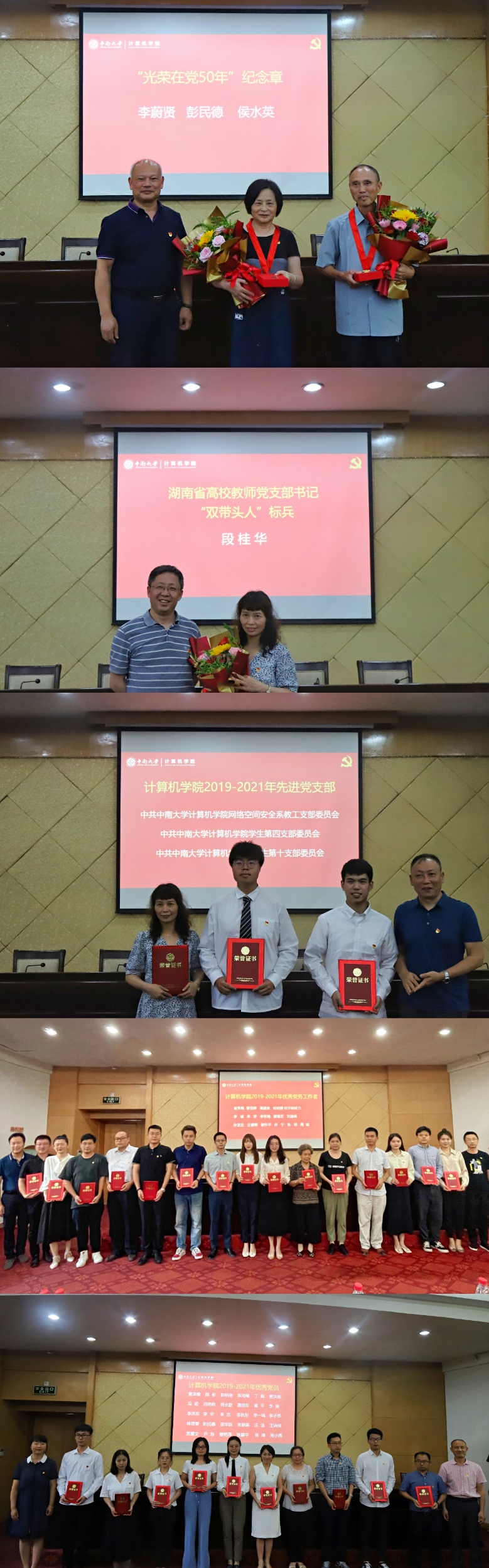 随后,院党委书记陈志刚为彭民德、李蔚贤和侯水英三位同志颁发“光荣在党50年”纪念章,院长王建新为段桂华同志颁发湖南省高校教师党支部书记“双带头人”标兵荣誉证书,博天堂娱乐城院党委委员胡志刚、赵明、邓晓衡、奎晓燕、陈先来等为受表彰的先进党支部、优秀党务工作者和优秀党员颁发获奖证书。