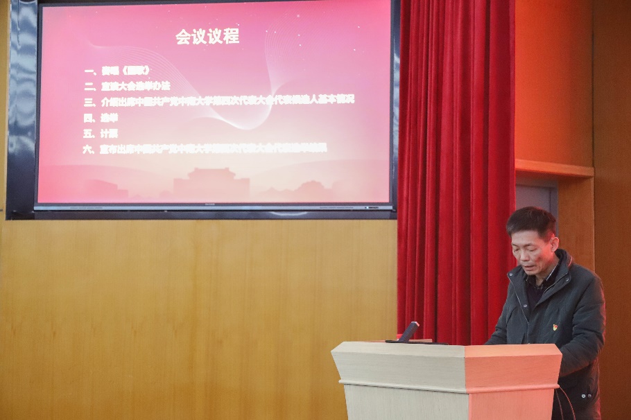 第四次代表大会代表候选人预备人选的批复》。他要求,全体党代表要切实提高政治站位,强化规矩意识,严肃工作纪律,严格按照学校党委审核意见和相关要求开展选举。