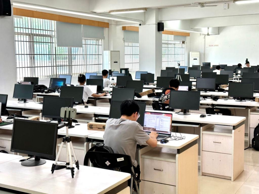 本次大赛采用线下集中组织参加线上赛的形式,线下地点位于铁道校区第二综合楼机房。下午13:00,各个团队的参赛队员完成登录和视频机位校正,进入备战状态。13:30,大赛正式开始,ACM校队教练陈再良老师和学员竞赛专干迟旭老师在大赛现场陪同各个团队参赛,密切关注着实时排行榜上学校的排名情况。