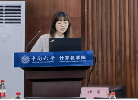 卓越拔尖2021级学生章蓓雯同学做了《Core Asset Identification and Visual Analysis Algorithm Based on Data Asset Lineage Graph 》的报告,学生所在团队通过研究拓扑结构和业务属性识别数据资产图谱中的核心数据资产。数据资产图谱具有多类型多关系特点,软件设计一种基于中心性理论的核心数据资产识别算法,将复杂的原始数据资产图谱中的核心数据资产识别出来,帮助用户快速把握数据资产图谱全局信息,以更好地理解网络并挖掘价值信息。