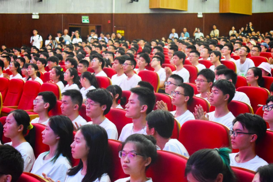 紧接着是老生代表唐健恒和新生代表延沫涵的发言。唐健恒向新生们表示了热烈的欢迎和由衷的祝贺,希望学弟学妹们能够充分利用大学的资源和机遇,在丰富多彩的大学生活中全面提升自我,积极拥抱大学的无限可能,创造一段充实而难忘的大学时光。延沫涵则表达了对未来四年大学的生活的无限憧憬与遐想,希望能够与同学们一同拥抱新环境,走出舒适圈,突破自我,不畏挫折,学以致用,在探索科学世界的旅途中为母校书写新华章,为党和国家做出自己的贡献。