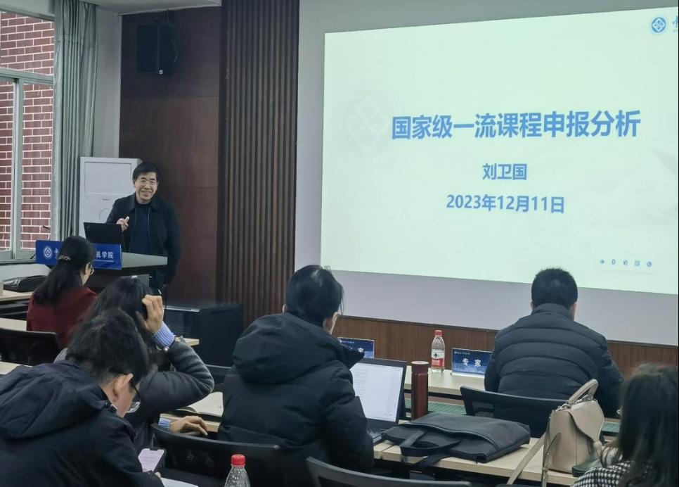 接下来,刘卫国教授从一流课程的核心要求与一流课程的申报建议两方面作经验分享。刘卫国指出,课程是人才培养的核心要素,课程设置要服务于专业人才的培养,因此老师们在课程目标的设置上,要充分体现学校的办学理念以及专业的培养目标,以知识目标、能力目标、素质目标进行条目式的展示。同时,刘卫国教授就如何写好申报书做了抽丝剥茧的分析,例如:在课程建设与应用情况中,要充分展示各阶段的主要任务和标准型成果,说明课程在教学设计、内容组织、资源建设等教学过程等方面的独特之处,突出特色;在课程特色与创新中,从内容、模式、方法、资源、评价、课程思政等角度总结3-4点有独特性和推广价值的内容;各模块内容都要直接向评委传递信息,有根有据,同时注重细节,方便评审专家查看。
