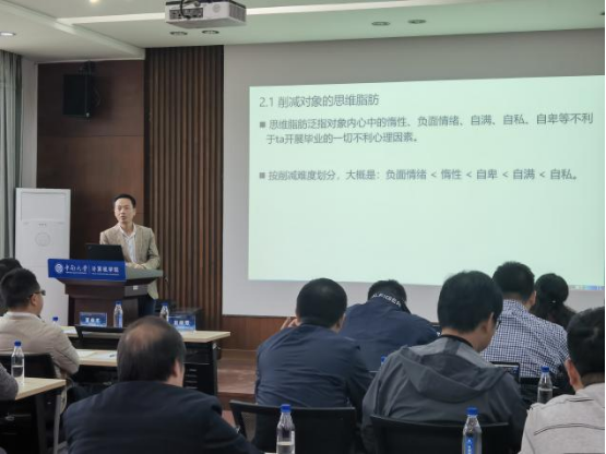 王磊老师针对博天堂娱乐城目前正在开展的本科毕业设计(论文)工作,以《对毕业设计过程中师生互动的反思》为题做了经验分享。王老师提出了“关于师生互动的三定律”及相关反思。一是基于“惯性定律”的反思。教师与学生会向对方施力,教师要想达到一定的教学效果,就得持续不断地给力;二是基于“动量定律”的反思。教师要有“知其不可为而为之”的决心,一方面削减学生的“思维脂肪”,即学生内心的惰性、负面情绪、自满、自私、自卑等不利于开展毕业设计的负面心理因素,另一方面增强学生的“思维肌肉”,即学生内心的道德感、敬业心、自尊力、自强力等一切良知;三是基于“作用与反作用定律”的反思。教师应持续向学生输出正面力量,并始终坚信自己施予学生正面的力,一定能产生积极的效果。