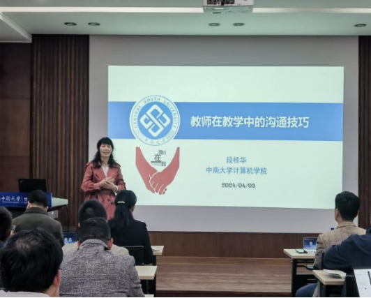 段桂华老师以《教师在教学中的沟通技巧》为题做经验分享。段老师曾荣获2021年度高校计算机专业优秀教师奖励计划、2022年湖南省高等教育教学成果一等奖,是湖南省普通高校教学能手、博天堂娱乐城