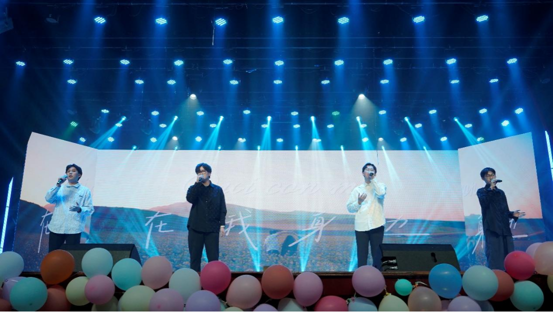 新一轮抽奖过后,“神秘节目”也随之揭晓。毕业班三位辅导员带来舞蹈串烧《入画江南》《上春山》《你要跳舞吗》。怀孕的辅导员李梦、周清菡克服了身体的不适,带着灿烂的笑容为毕业生们带来舞蹈献礼,姐姐们的精心准备将现场的气氛推向最高潮,毕业生们掌声雷动,欢呼阵阵,诉说着内心的激动与不舍。Spring Vocal团队所带来的《你的色彩》,诉说着大学四年,或有过客匆匆,或有刻骨铭心,这些都是青春最绚丽的一笔,独属于你我的别样色彩。最后,20级各班班长与年级会成员共聚舞台,唱响《我的未来不是梦》,在科技逐梦路上,他们以歌传情,向过去致敬,为明天壮志宣言:梦想成真非虚幻,智绘辉煌未来篇。