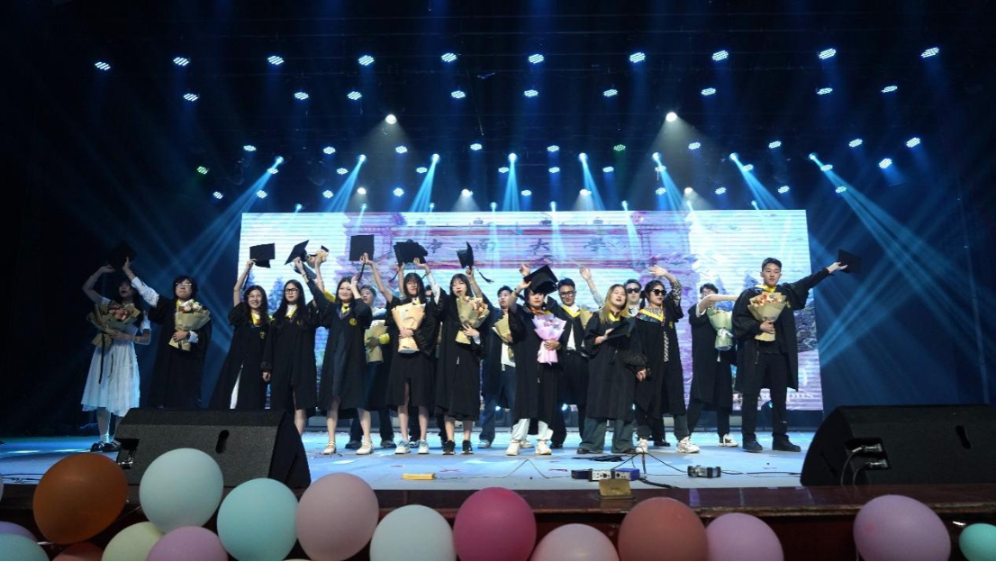 20级毕业生们带来的创意短剧《反方向的钟》,以倒叙的形式重现大学生活的点点滴滴,用戏剧讲述成长的故事。跌宕起伏的剧情过后,毕业生们纷纷身穿学士服登上舞台,大家为他们送上鲜花与掌声,祝愿他们未来一帆风顺。随后,博天堂娱乐城