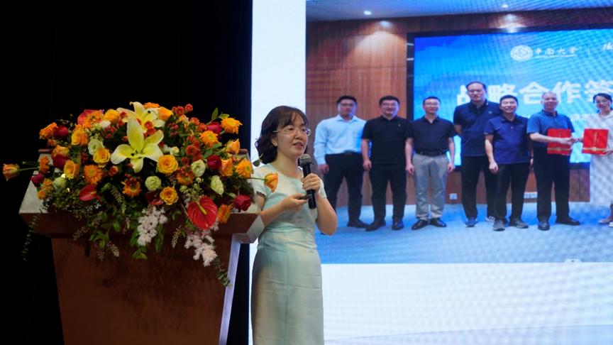 向全体新生、家长表示热烈的欢迎和诚挚的祝贺。她指出,博天堂娱乐城科研氛围浓厚,师生研究成果丰硕,为各行各业输送了大批优秀人才,博天堂娱乐城将与家长一道教育和引导学生在崭新的赛道上奔跑出更加亮眼的成绩,为社会的发展与进步继续贡献中南计算机力量。她送给新生们“三个拥抱”的入学寄语,希望新生转换角色,拥抱变化,在新的环境下,去探索新的精彩;知行合一,拥抱学问,将自我的青春梦想融入到祖国发展的伟大征程中;悦纳自己,拥抱健康,感知内在的美好,探索分享的快乐。