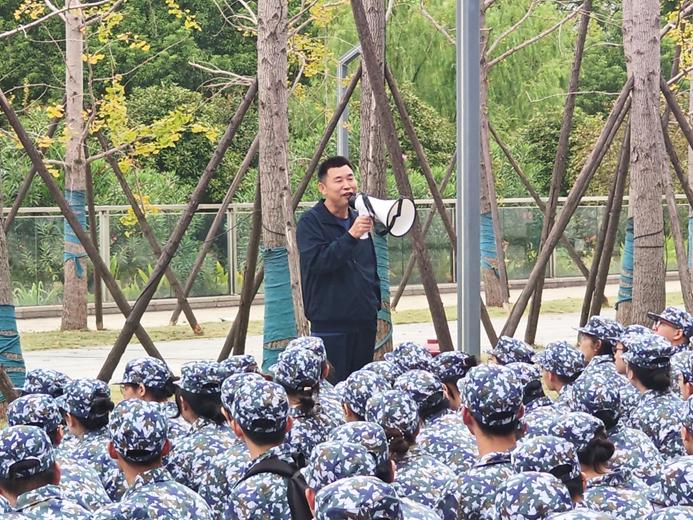 党委副书记王新辉为新生们作军训动员。“苦不苦,想想红军二万五;累不累,想想革命老前辈。”王新辉借长征精神勉励本科新生在军训中培养爱国情感和集体主义精神,磨炼顽强意志品质,在教官指导下刻苦训练、超越自我,以顽强毅力和坚定信念迎接挑战,收获成长,通过二十一天的军训,努力成为一支召之即来、来之能战、战则必胜的先锋队伍。同学们深受鼓舞,在王书记的带领下齐声高喊出“我们要争做第一流!”的誓言。