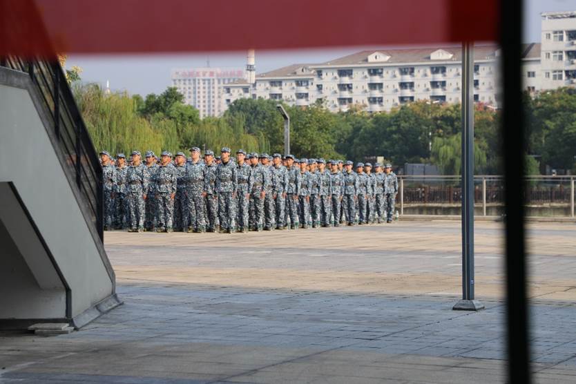 军姿之后,便是由静到动的演化——训练踏步。在排长的口令下,同学们整齐的踏步声与响亮的口号声相映成曲,“演奏”出一首首“青春战歌”,响彻校园。