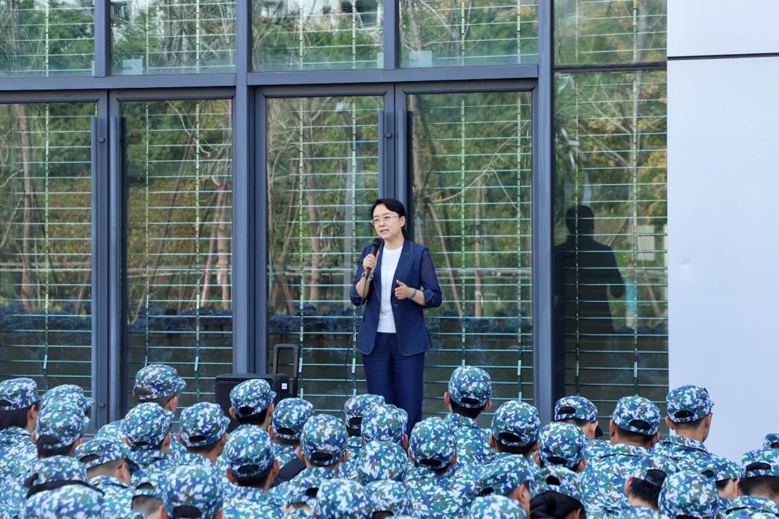 全体2024级新生表达问候,对同学们展现出的精神风貌给予赞许。她鼓励新生们要珍惜军训时光、享受军训收获,通过军训培养坚韧不拔的意志、吃苦耐劳的精神和良好的纪律意识,以更加饱满的精神状态圆满完成军训任务。