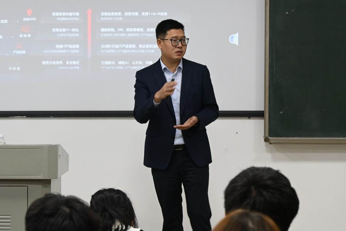 赵光凯就华为在行业变革中的策略进行了深刻剖析。他详细阐述了在行业的变革历程中,华为怎样借助大数据、AI等技术来提升内部效率与对外服务能力。他强调,在这一变革中,华为通过整合多种先进技术,实现了内部运营的高效化,并对外输出更优质的服务。借助一系列鲜活的实例展示,同学们得以直观理解如何在行业变迁的浪潮中自我调适并提升个人能力,同时也对未来有了更明晰的职业规划。