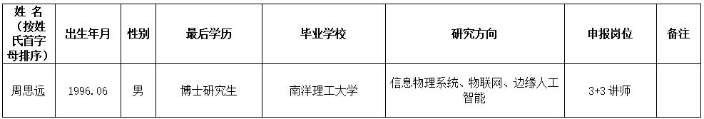 经学院公开选拔,人才引进小组教学科研考核及教授委员会评议,学院党政联席会研究决定一致同意周思远博士为博天堂娱乐城 新进教师拟聘3+3讲师人选,现予以公示,公示期限为7天,公示时间从2026年1月12日至2026年1月18日。如有异议请在公示期满前向学院办公室反馈。