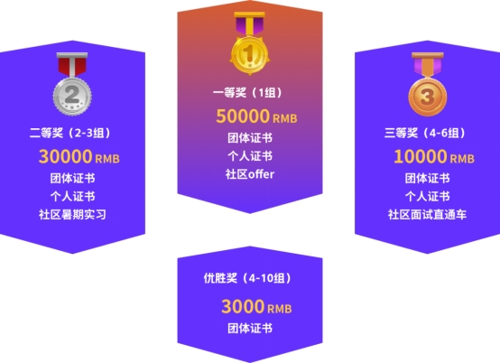 本届大赛分为初赛与决赛两个阶段,晋级决赛的队伍,根据决赛评审规则将评选出一等奖、二等奖、三等奖、以及优胜奖奖项,各奖项获奖队伍可获得相应的奖金(税前)或奖品,所有获奖队伍师生均可获得相应级别证书。