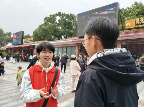 李天宇:从省博物馆的一件件红色年代的文物旁走过,心中升起层层炙热的火焰。当我们站在张张黑白照片前,深深体悟和追忆曾经的岁月,我们不禁感慨:火红的年代离我们其实不远。从省博物馆体悟到的红色精神被我们带到橘子洲头,我们身穿红色志愿服,在来来往往的游客之中穿梭,解答游客们的疑问,当理念和实践汇合之时,红色基因便得以传承,我们所以同时存在于那时和这时。