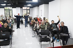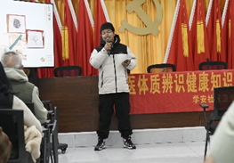 完成艾草锤的制作后,同学们继续向爷爷奶奶们展现了传统气功“八段锦”的动作流程。舒缓的旋律、念白、动作,让大家的身心得以舒缓。“两手托天理三焦”调整气血,“左右开弓似射雕”调理心肺,“调理脾胃须单举”促进消化,跟随着同学们的动作,爷爷奶奶们也一遍一遍地学习,感受着气血的调和,也感受着传统文化的魅力。
