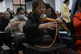 爷爷奶奶们认真制作,互帮互助