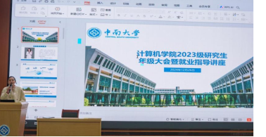 在信息楼108报告厅召开2023级研究生年级大会暨就业指导讲座。23级全体硕士研究生到会参加。