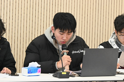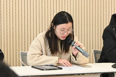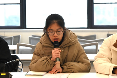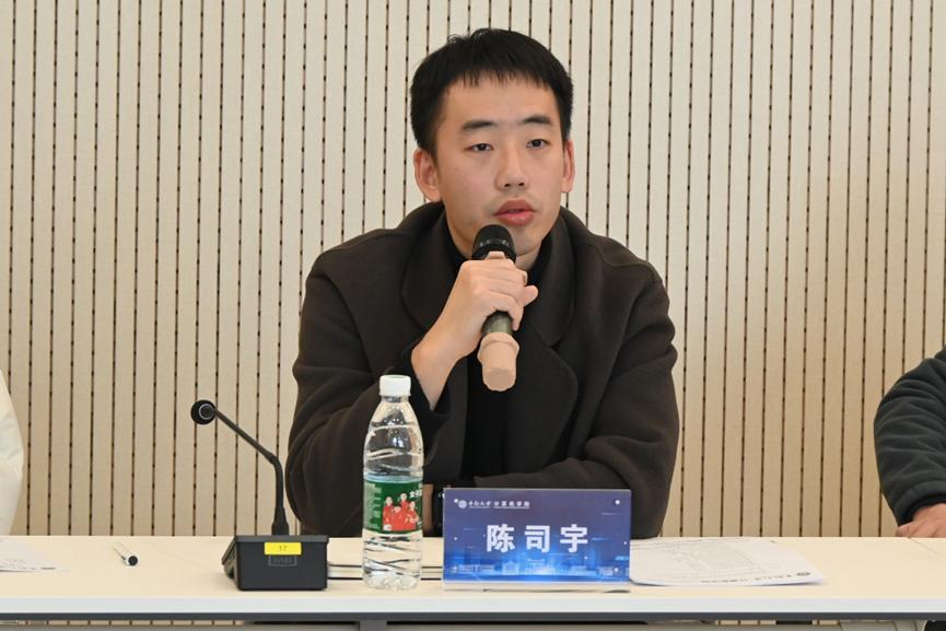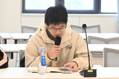 陈司宇进行年终总结及工作展望,他肯定了过去一年里院团学研组织各部门取得的工作成果,并从内部建设和专业素养两方面给出建议,希望学生干部们多总结、多实践、多动笔,充分调动学生积极性。他指出,假期在即,可以利用好寒假的时间提前开展工作部署,对标学校工作要求,开展专门化、特色化活动。