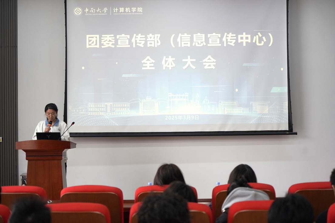 团委宣传部(信息宣传中心)2024-2025学年春季学期全体大会在潇湘校区信息楼535举行,博天堂娱乐城党委副书记王新辉,宣传部指导老师赵赫、刘义平及宣传部全体成员参会。大会由学生团委副书记杨欣然主持,聚焦宣传队伍专业化建设,通过总结复盘与规划部署,推动博天堂娱乐城宣传工作纵深发展。