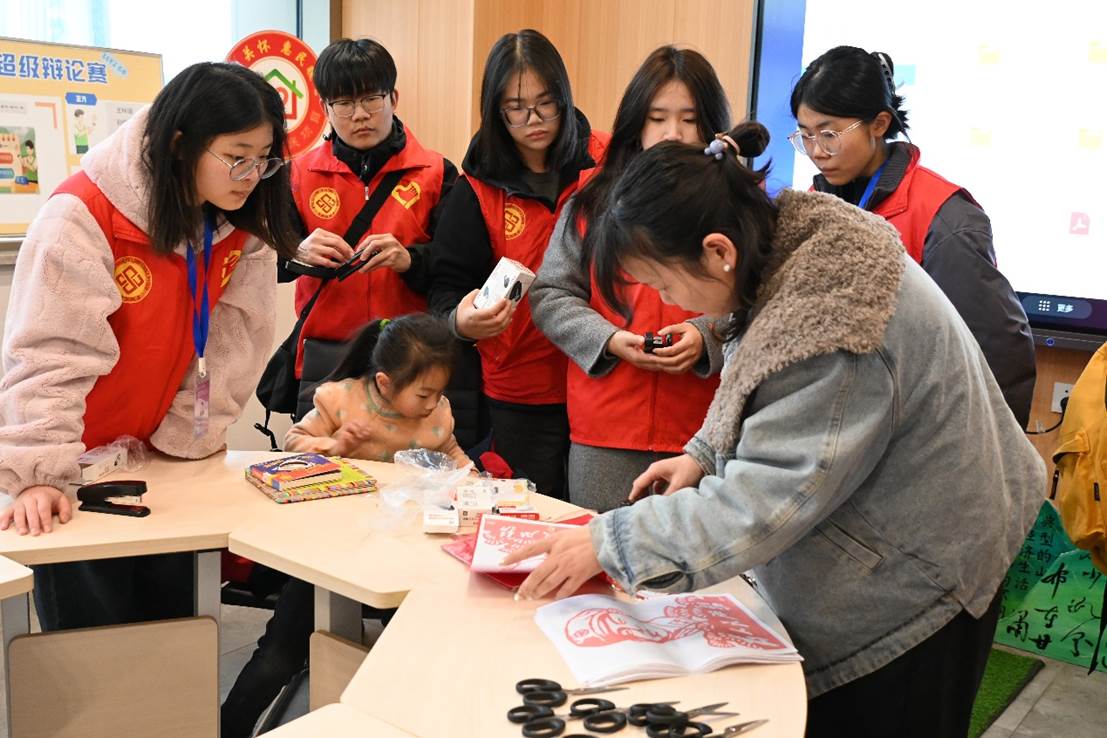 团委青志协在长沙市图书馆洋湖国际分馆圆满举行“活水清波漾童梦,纸艺雷锋德韵扬”主题志愿活动。本次活动以剪纸艺术为载体,联合岳麓区李子童画机构,让孩子们了解雷锋故事,感悟雷锋精神的伟大,培养他们乐于助人、无私奉献的品德。活动中,志愿者们耐心陪伴、悉心辅导,孩子们稚嫩的双手在纸张间精心雕琢,一剪一刻间雷锋形象也镌刻于童心间。