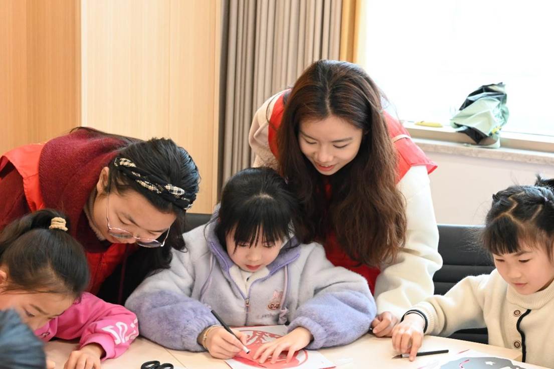随后,李子童画机构负责人老师向小朋友们介绍了剪纸艺术的深厚底蕴与独特魅力,并对即将开展的剪纸转印活动进行了详细演示。在老师的详细指导与有序组织下,志愿者们将手工工具分发至每一位小朋友,并一对一地与小朋友开始剪纸手工之旅。