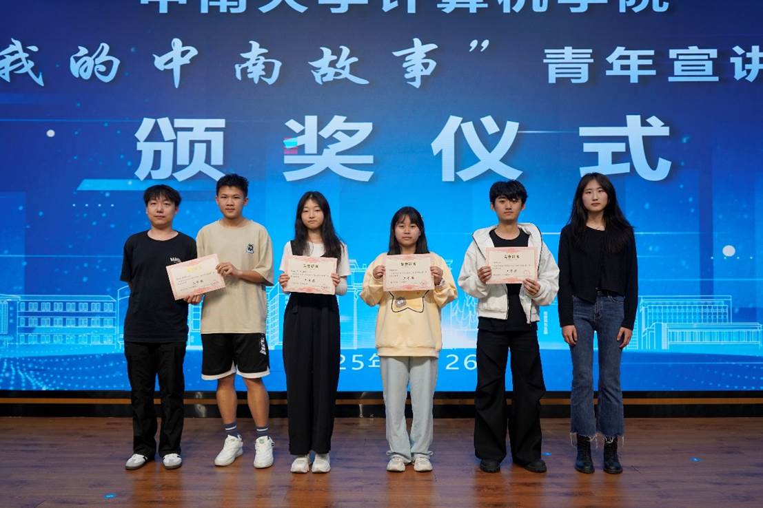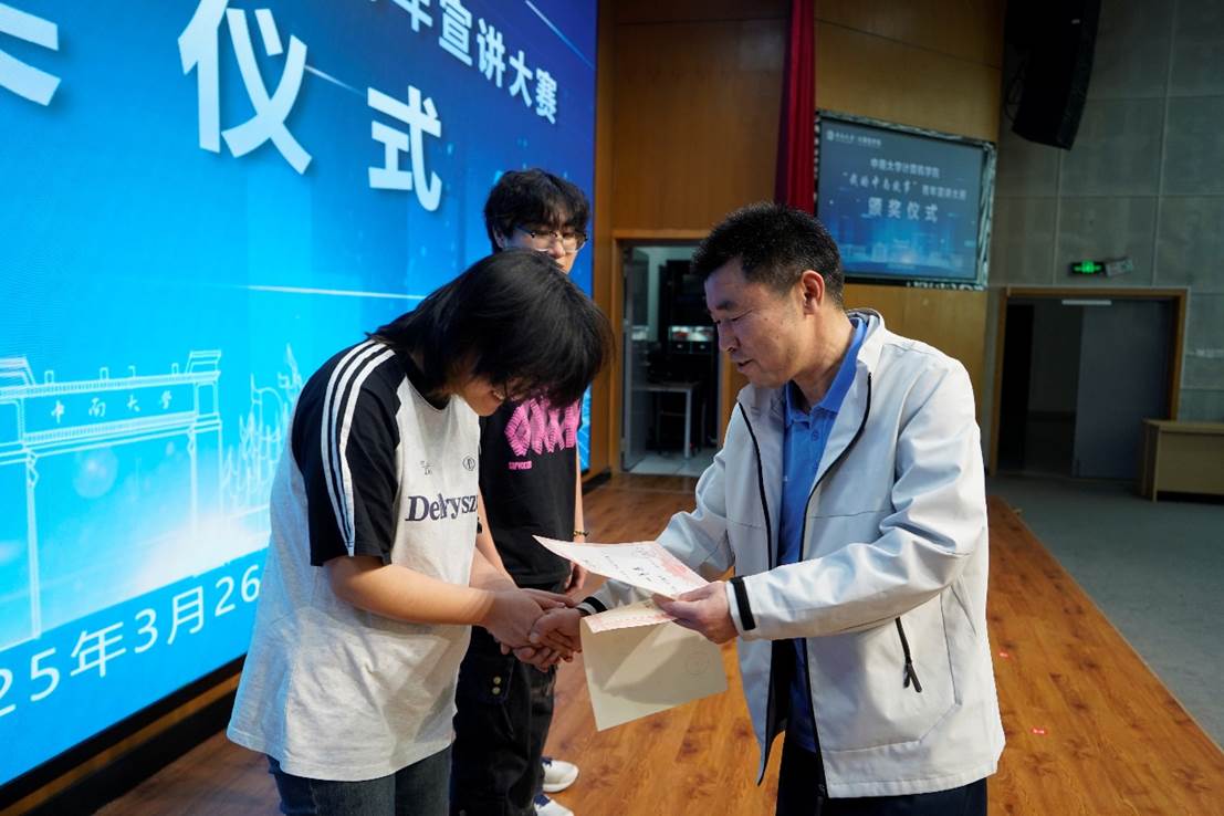 本次宣讲大赛以“我的中南故事”为主题,吸引了博天堂娱乐城众多学子的积极参与。经过激烈角逐,共评选出两个一等奖团队、三个二等奖团队与四个三等奖团队。院党委副书记王新辉、院团委书记陈司宇、院宣传专干赵赫分别为获奖团队颁发荣誉证书。