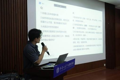 在互动交流环节,同学们积极提问,就自己关心的国企银行求职问题,如岗位选择、职业发展前景、薪资待遇等与学长学姐进行了深入探讨。学长学姐们耐心解答,不仅给出了具体的建议,还分享了自己在求职过程中遇到的困难和解决方法,让同学们对国企银行求职有了更全面、更深入的认识。