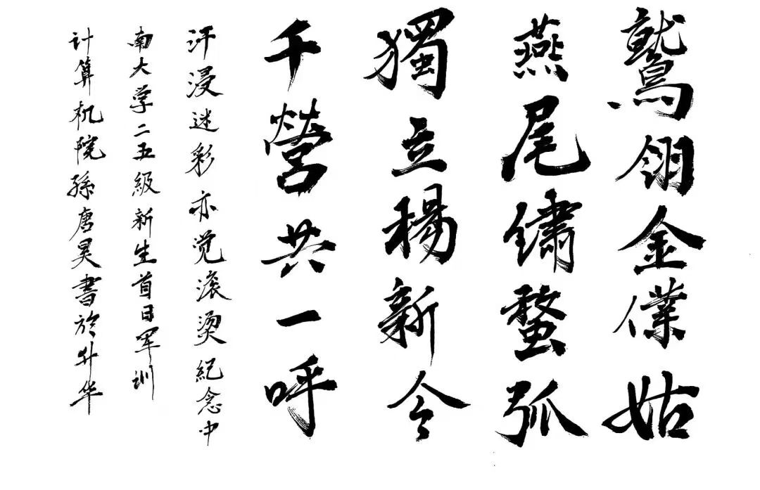 沙场点兵存浩气,书山砺剑磨金钺。待他日、回首军训日,仰天阙!