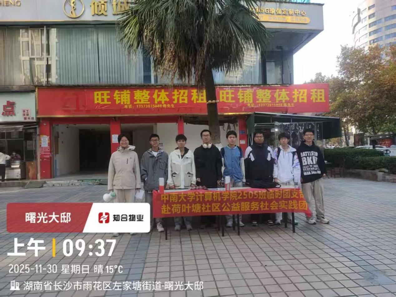 2505班实践团在荷叶塘社区开展“中南计心,反诈为民”公益活动。通过布置场地、有奖问答、小程序互动、一对一答疑等环节,向居民普及反诈及网络安全知识,吸引众多居民参与。活动践行志愿精神,发挥专业特长,有效提升居民风险防范能力。