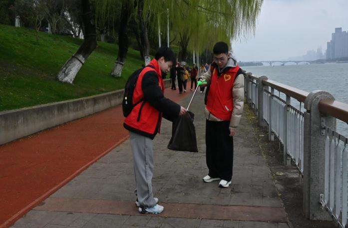 团委青志协与学生会体育部组织志愿者在橘子洲景区开展以“雷锋精神映初心,青春护水踏歌行”为主题的“河小青”志愿服务活动。通过巡护湘水的实际行动,更好的引导青年学子践行雷锋精神、共建绿色生态。
