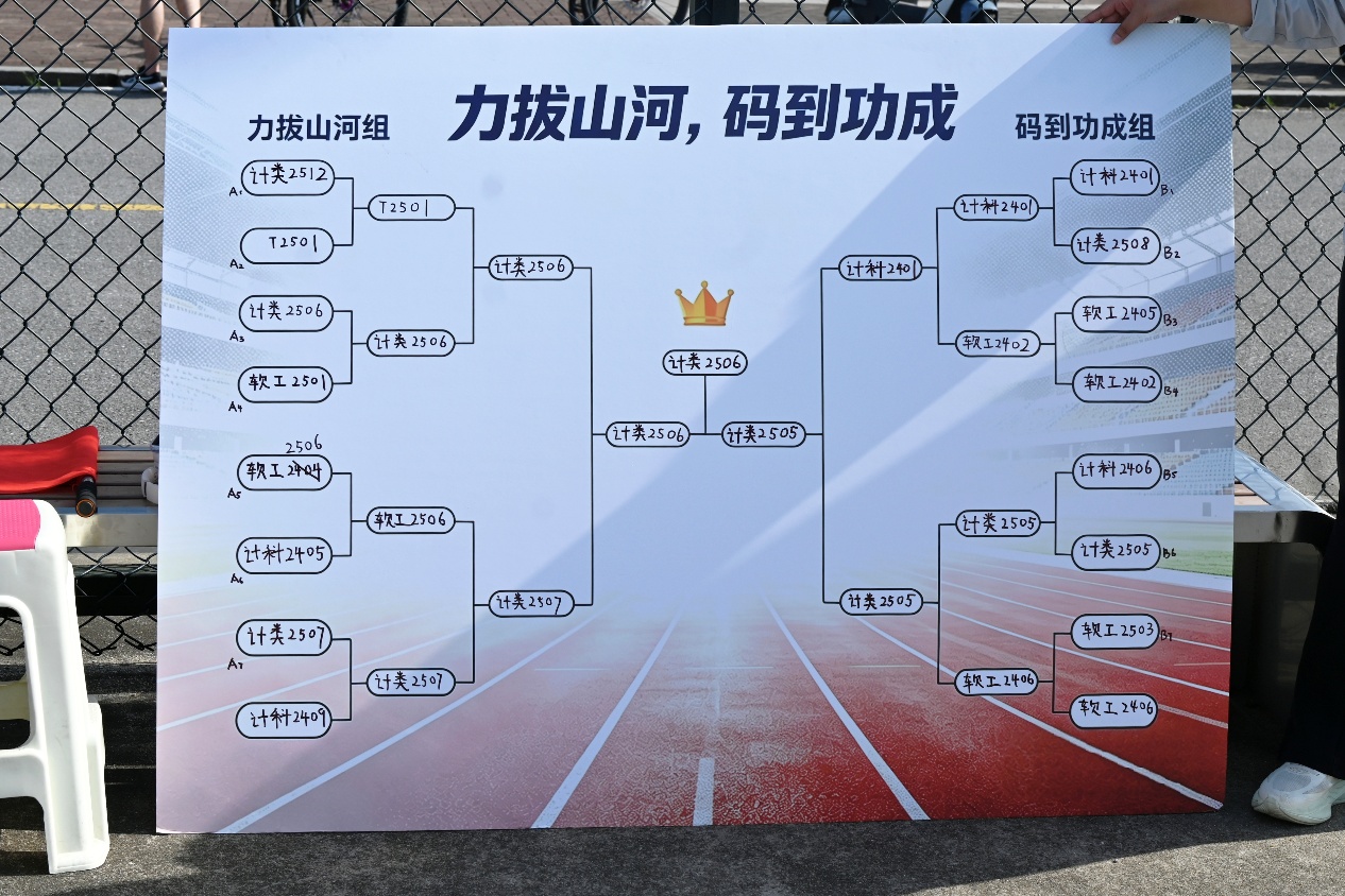 从小组赛的激烈角逐,到淘汰赛的紧张对决,再到总决赛的巅峰对决,每一支队伍都展现出不抛弃、不放弃的坚韧品格,每一次发力都凝聚着班级的团结力量。赛场之上,展现的是拼搏之美;绳索之间,联结的是同窗情谊,彰显的是集体荣光。