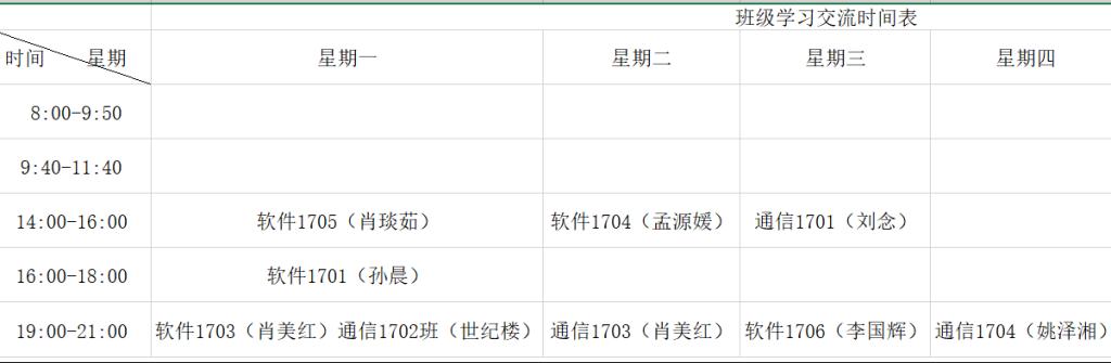 软件工程17级同学活动参与积极性有待提高;18级同学学习交流活动情况良好,活动期间认真学习,积极讨论。1702、1703、1704、1805四个班级本周未进行学习交流活动。